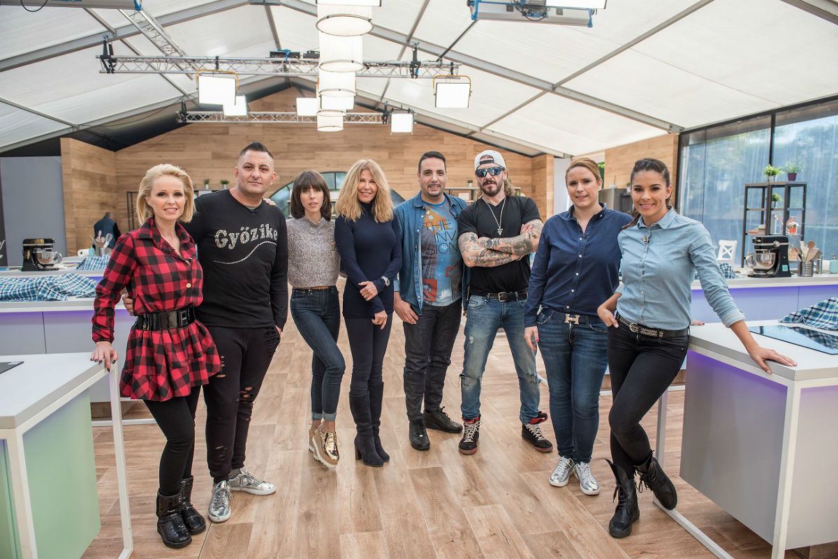 Az Ide süss! sztárjai: Ganxsta Zoli, Köllő Babett, Varga Győző, Molnár Andi, Cinthya Dictator, Risztov Éva, Gáspár Győző és Sütő Enikő – fotó: VIASAT3