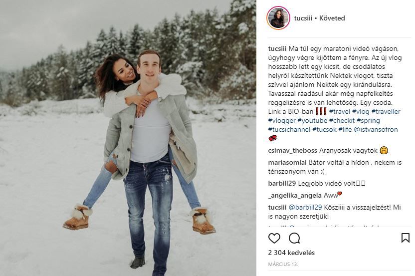 Tücsi és Sofron István tavaly év elején vállalták fel először szerelmüket. Azóta Sofi már megkérte szerelme kezét, és több országot is megjártak együtt. Tücsiék először Amerikába költöztek a sportoló karrierje miatt, majd Ausztriába vezetett az útjuk. A szezonnak már vége, de egy fotózás erejéig visszatértek a hegyekbe – Tücsi jól bírta a ,,kiképzést”, Sofron István azonban még mindig nem tudott hozzászokni a fotózások hangulatához.