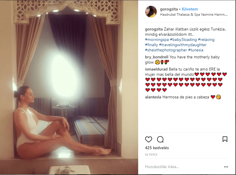 Március elején derült ki, hogy Görög Zita gyermeket vár szerelmétől, a focista Laczkó Zsolttól. Azóta az is kiderült, hogy Zita nem viseli valami jól a terhességet, de igyekszik minél többet pihenni. Éppen ezért most időt szakított egy kis utazásra, méghozzá Tunéziába repült – a képről kiderül, hogy Zita a lányával ment az afrikai országba, méghozzá a #csajoskiruccanás hashtaget használta a fotóhoz. Már Tunéziából is posztolt, méghozzá fürdőruhában, így megvillant gömbölyödő pocakja is.