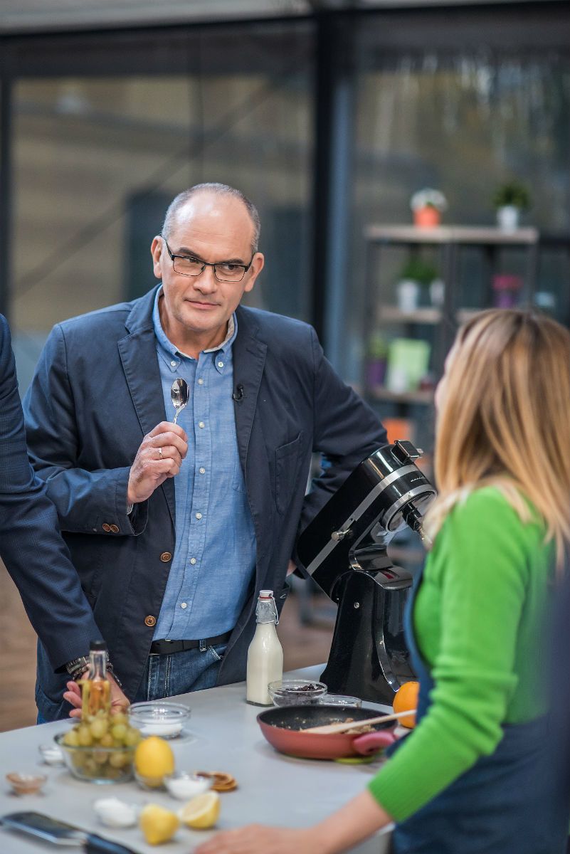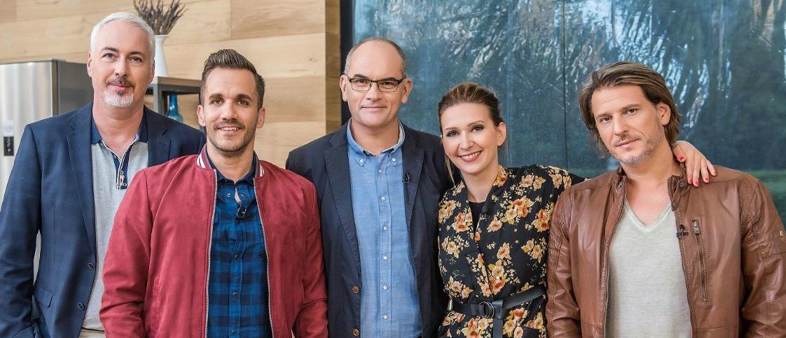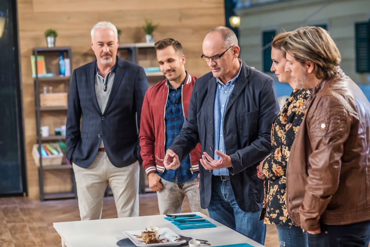 Gundel Takács Gábor az Ide süss! műsorban Hajós Andrással, Sass Danival, Baracskay Angélával és Szabadfi Szabival – Fotó: VIASAT3/ Labancz Viktória