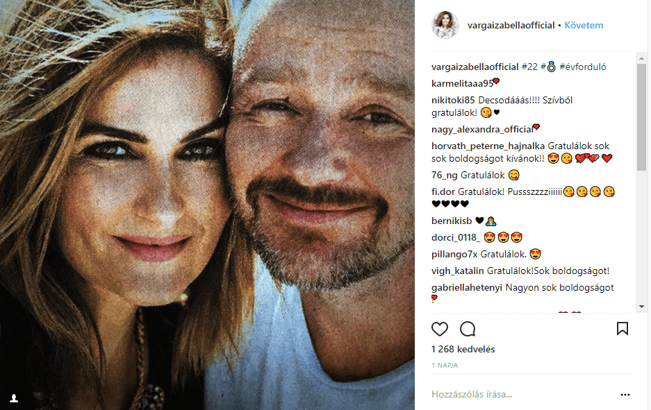 Varga Iza tegnap posztolt képéhez csupán annyit fűzött, hogy #22, ami a megismerkedésükre utal. A kommentelők nem győztek gratulálni a színésznőnek, aki reményt ad azoknak, akik hisznek a sírig tartó szerelemben.