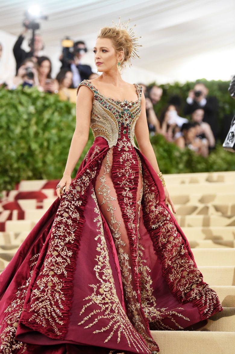 A MET-gála látványos ruhái között volt Blake Lively dressze, és ez nem meglepő. Alaposan kidolgozott szettjének minden négyzetcentimétere látványos volt, de ezt vártuk már a gála előtt is, hiszen csak a díszítéseit 600 órán keresztül készítették. A főpapi díszruhákra utaló, drámai bíbor-arany Versace estélyiben a színésznő nyerte a MET-gála ruhaversenyét.