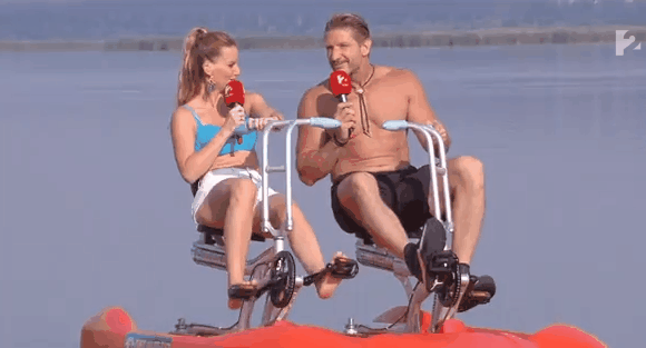 Szögezzük le, mindjárt az elején, hogy Pintér Tibor egy rettentően kedves ember, akinek nincs egy rossz szava sem senkiről. Éppen ezért nem is szeretnénk bántani, de tényleg csak belőle néztük ki, hogy egy szál fürdőnaciban áll kamera elé. Ma reggel élő adásban jelentkezett be a Mokkából, miközben Mádai Viviennel tekertek a Velencei-tavon.