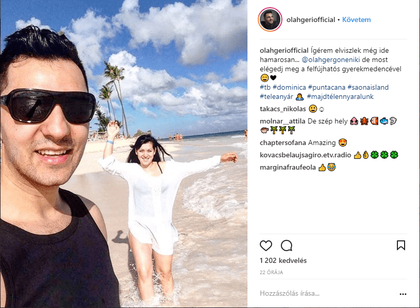 Oláh Gergő nemrég elárulta születendő gyermeke nemét, akivel 6 fősre bővül majd a család. Az énekesnek sűrű időszaka van, hiszen a gyerekvárás mellett a koncertidőszak is eljött, nem tud sokat otthon lenni a családjával. Egy pár éves képet osztott meg az Instagramján, ami Punta Canán készült, és egyben közölte a feleségével, hogy most sajnos nincs lehetőségük elmenni ide.