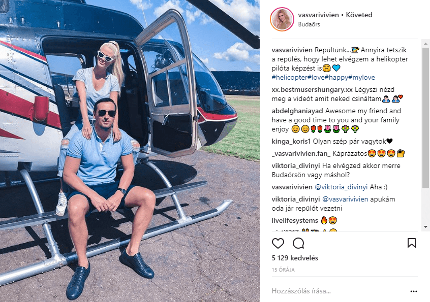 Vasvári Vivien alig két hónapja adott életet második gyermekének, máris remek formában van. Luxus Vivi és párja már az esküvőt tervezik, pár héten belül összeházasodnak. Addig is sok időt töltenek együtt, most például repülni voltak, ráadásul egy helikoptert próbáltak ki. Vasvári Vivien szereti a kihívásokat, így a poszt szerint talán nemsokára elvégez egy pilóta tanfolyamot is.