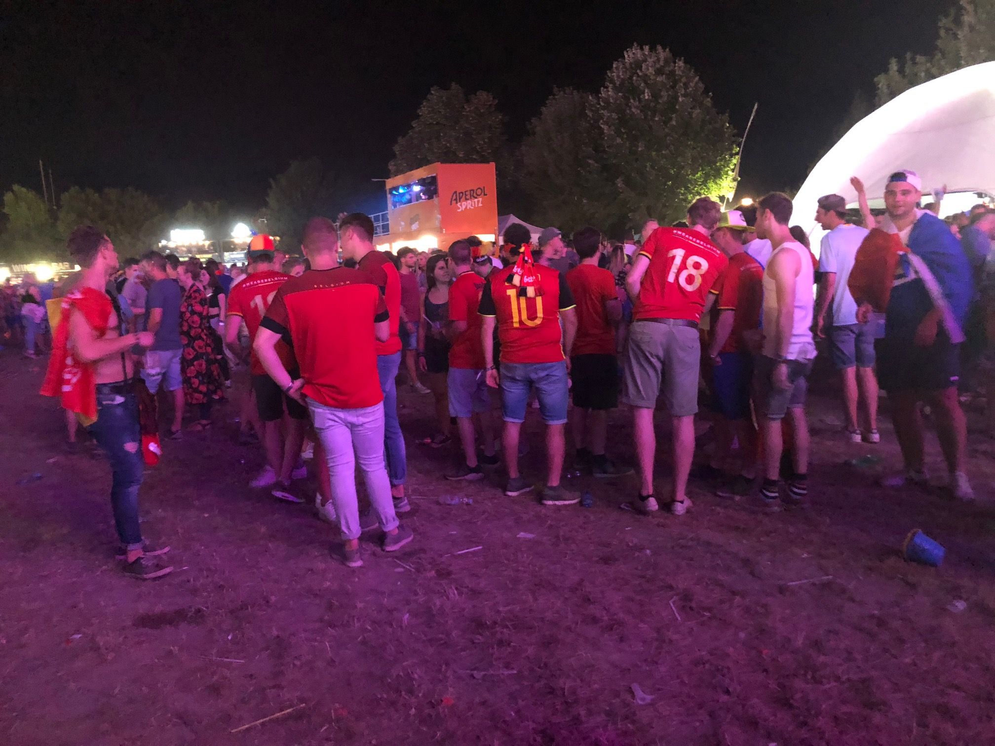 Ella Eyre, Rita Ora ide vagy oda, a belga-brazil összecsapás fontosabb volt nekik, így bár a Balaton Sound területén, de a koncertek helyett a meccset nézték. Már a bejáratnál láttam, hogy több száz belga mezes szurkoló özönlik be a fesztiválra, a himnuszukat énekelve, a játékosaik nevét skandálva.