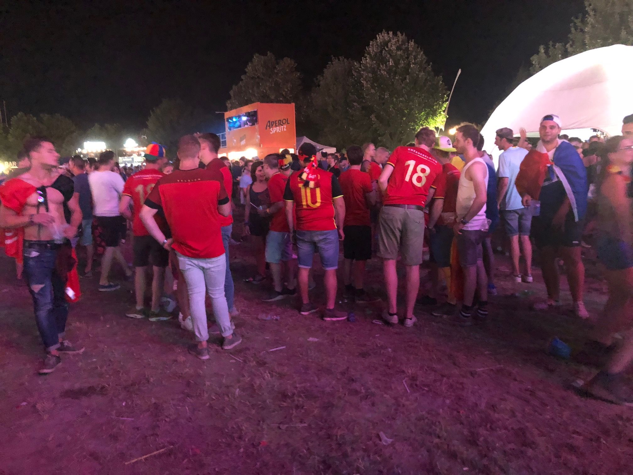 Ella Eyre, Rita Ora ide vagy oda, a belga-brazil összecsapás fontosabb volt nekik, így bár a Balaton Sound területén, de a koncertek helyett a meccset nézték. Már a bejáratnál láttam, hogy több száz belga mezes szurkoló özönlik be a fesztiválra, a himnuszukat énekelve, a játékosaik nevét skandálva.