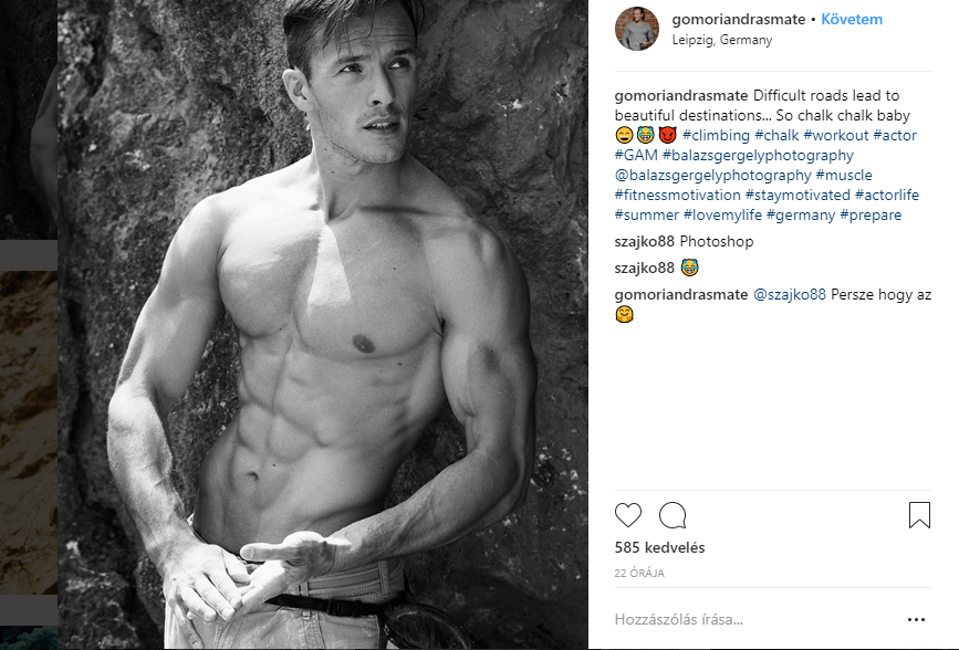 Gömöri András Máté vitathatatlanul jó pasi, ezért rengeteg női rajongója van. A férfiak viszont valamilyen szinten féltékenyek rá, ami a kép kommentjéből is kiderül.