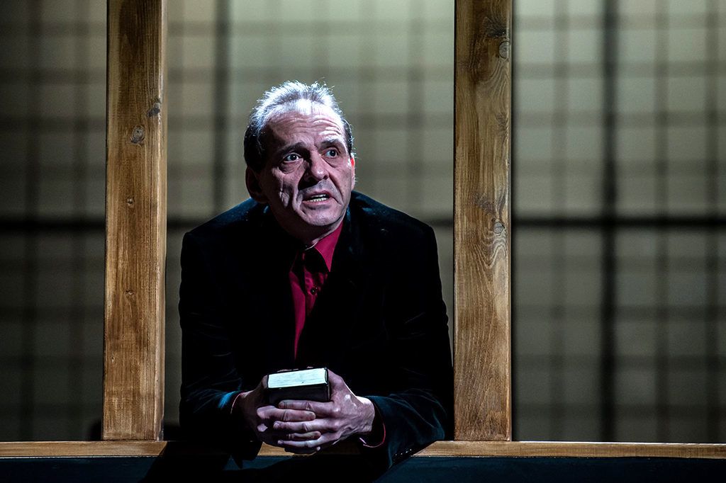 Hevér Gábor János szerepében Bartis Attila Rendezés című színdarabjának próbáján (Fotó: MTI/Balogh Zoltán)