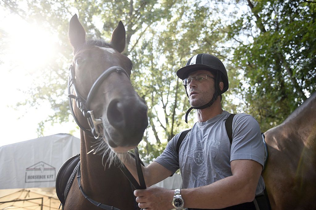 Stohl András színművész készül a 2016-os Nemzeti Vágta Sztárfutam résztvevőinek edzésén (Fotó: MTI/Kovács Tamás)