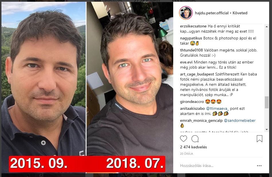 Hát és tessék, mindez azért, mert Hajdú Péter feltöltött egy „akkor és most” képet az Instagramra. A bal oldalihoz képest 10 kilót fogyott.