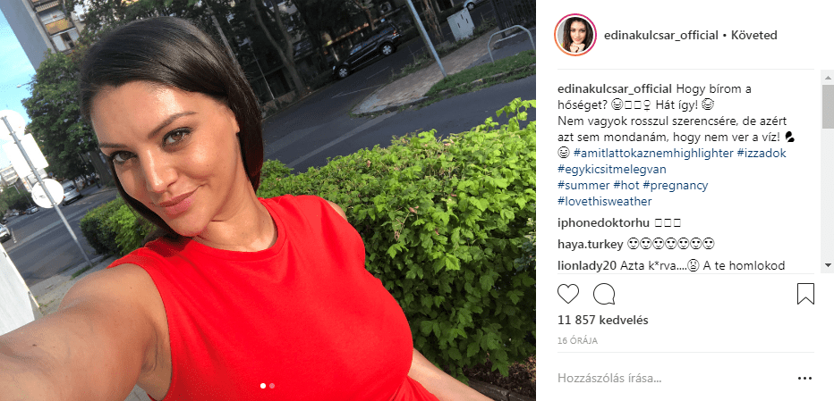 Kulcsár Edina a közösségi oldalán ad erőt a többi kismamának, hiszen köztudott, hogy ez a meleg senkinek sem tesz jót, főleg a várandós nőket viseli meg.