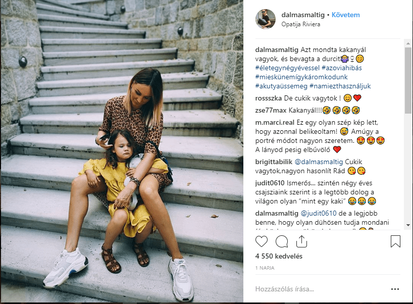 Smaltig Dalma pár hónapja már kétszeres anyuka, a kisfiát azonban csak ritkán mutatja meg. Nem úgy, mint a kislányát, aki imád édesanyjával pózolni. A négyéves Szofinak már igazi csajos dolgai vannak, hihetetlenül aranyos. Persze, ha durci van, akkor nincs barátkozás, ez már csak így megy a dackorszakban.