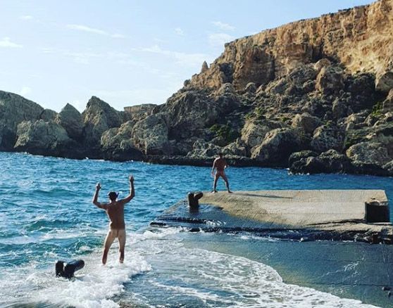 Anyaszült meztelenül fürdőztek Máltán a magyar hírességek, a helyiek nem voltak felkészülve Till Attila és Majka villantására.