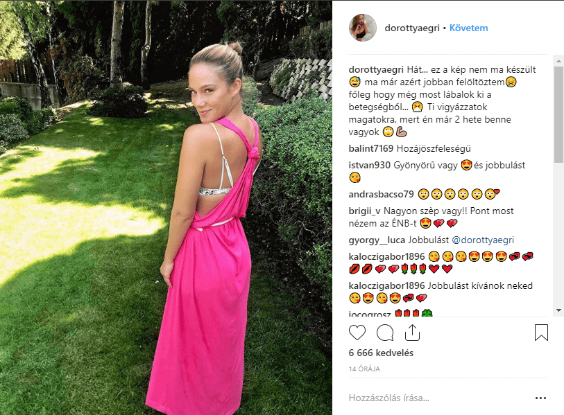 „Hát… Ez a kép nem ma készült. Ma már azért jobban felöltöztem. Főleg hogy még most lábalok ki a betegségből… Ti vigyázzatok magatokra, mert én már 2 hete benne vagyok” – írta a fotójához ÉNB Bori, mire a rajongók egyből tanácsokkal bombázták, hogy miként tudna kigyógyulni a betegségből.