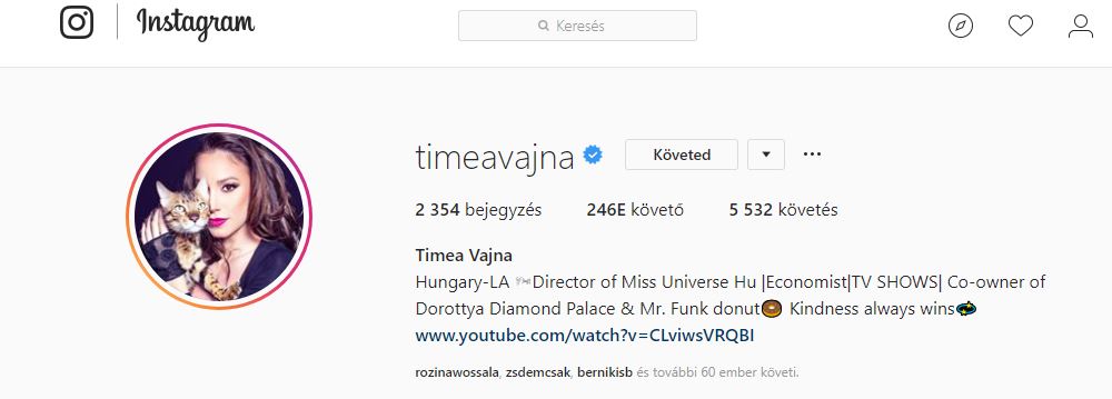 De kezdjük rögtön az elején. Vajna Tímea nemcsak azt sorolja fel az Instagramon, hogy milyen sikeres üzletasszony (gyémánt-biznisz, szépségverseny, fánkkirálynő), hanem a mottóját is (A kedvesség mindig győz). Lehet ezzel vitatkozni, de teljesen felesleges.