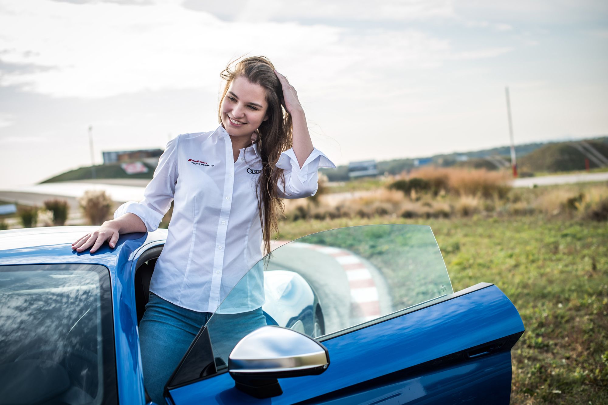 Keszthelyi Vivien autóversenyző a zsámbéki Driving Camp vezetéstechnikai pályán. Fotó: Vadnai Szabolcs (NLCafe.hu)