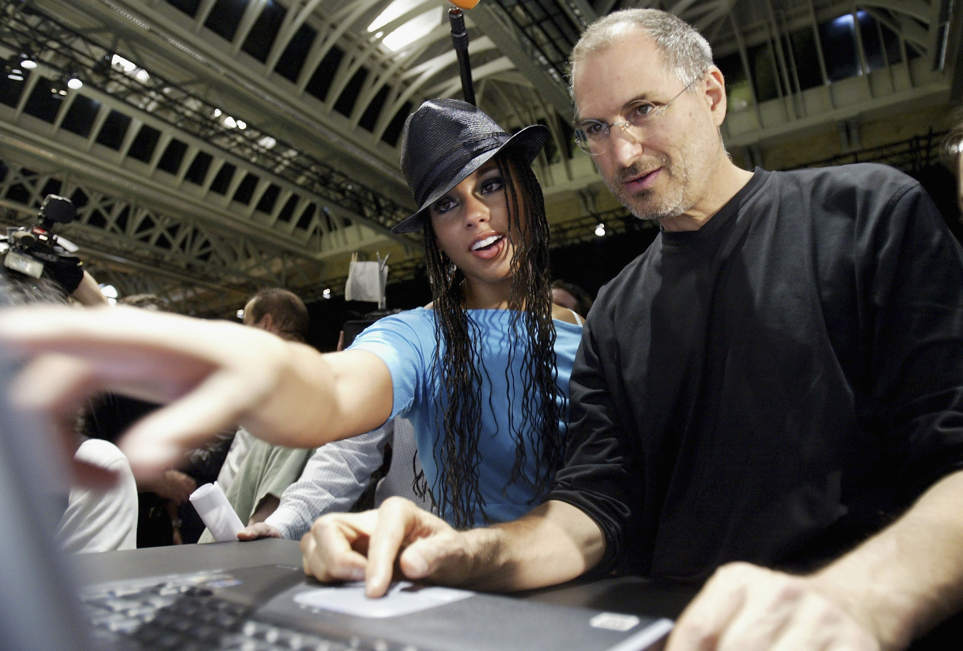 Jobs az iTunes bemutatóján Alicia Keys-szel (Fotó: Getty Images)
