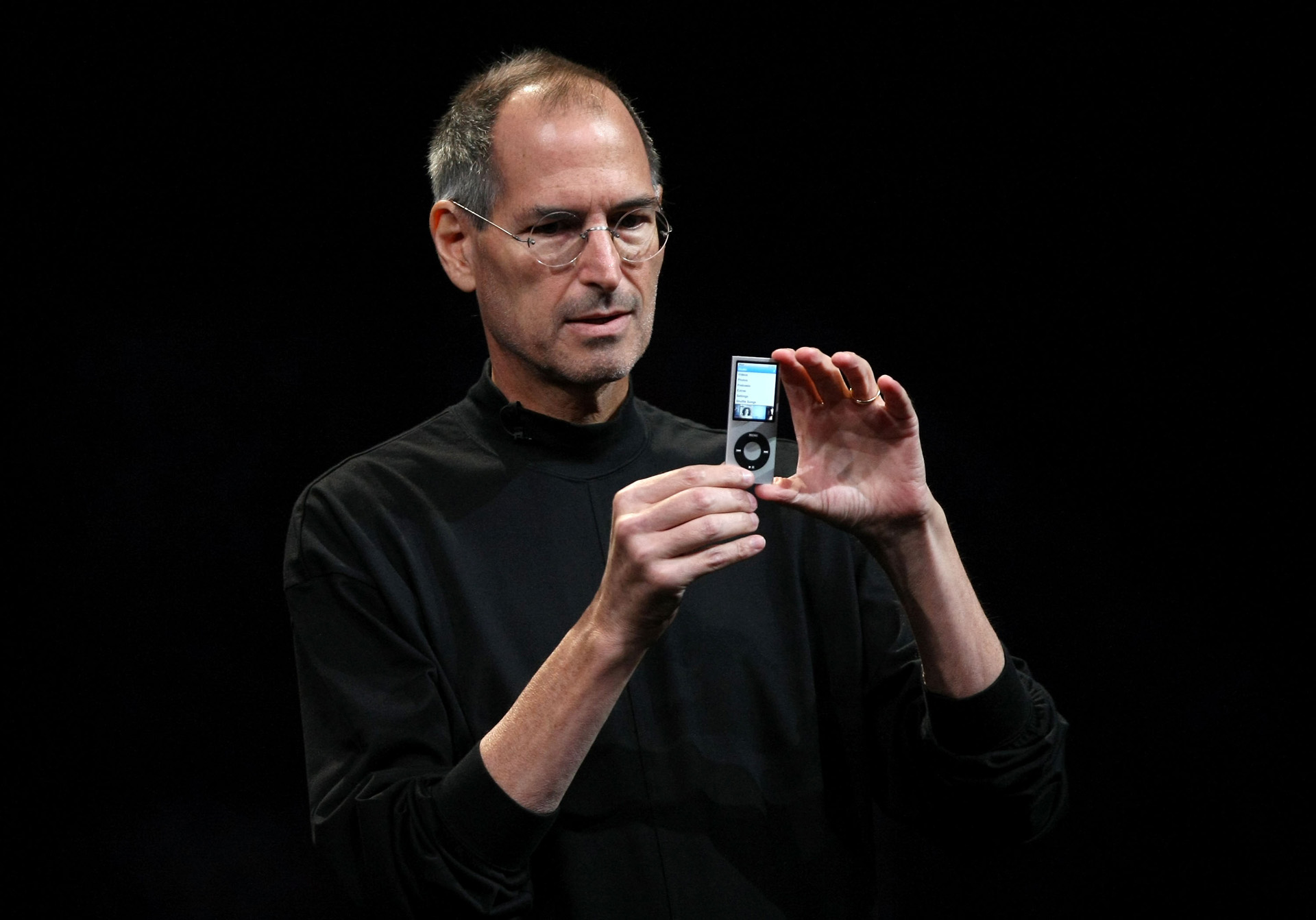 Steve Jobs és az iPod nano (Fotó: Justin Sullivan/Getty Images)