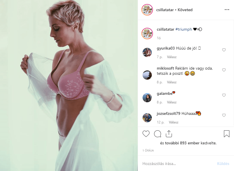 Mondanunk sem kell, a követők odáig vannak a szexi fotóért. Tatár Csilla csupán márkanevet írt kommentben, de nem is nagyon kell hozzáfűzni semmit, hiszen szuper formában van.