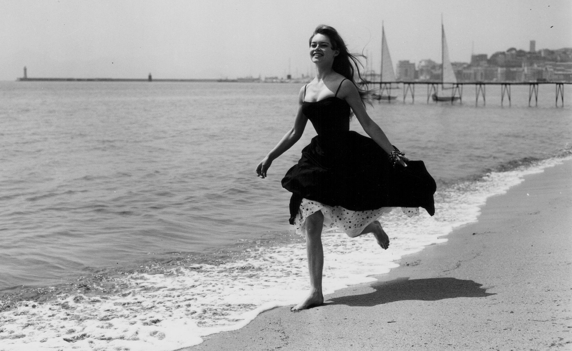 Brigitte Bardot mezítláb a parton (Fotó: George W. Hales/Fox Photos/Getty Images)
