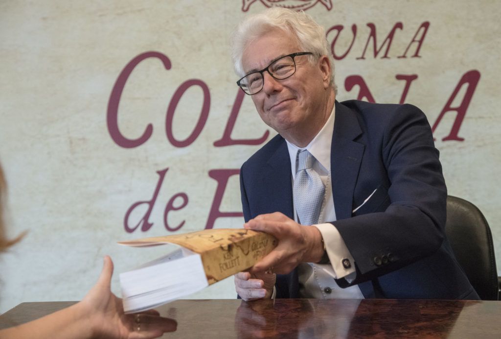 Ken Follett A tűzoszlop című regényét dedikálja Lisszabonban (Fotó: Horacio Villalobos – Corbis/Corbis via Getty Images)