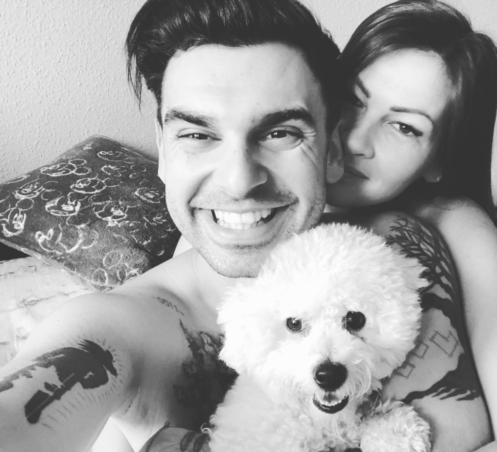 Horváth Tamás és felesége, Andrea a kiskutyájukkal, Gokuval