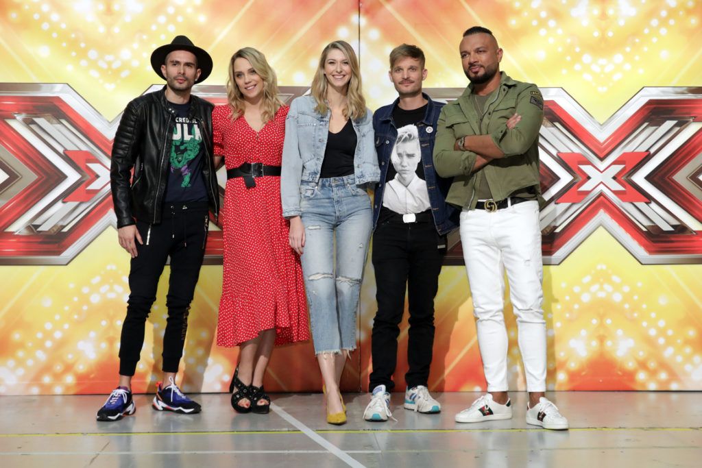 Az X-Faktor zsűrije és műsorvezetője: ByeAlex, Kiss Ramóna, Dallos Bogi, Puskás Peti és Gáspár Laci (Fotó: RTL Sajtóklub)