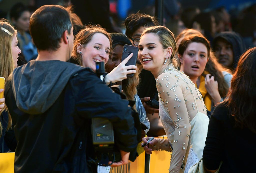 Lily James a rajongókkal (Fotó: Gareth Cattermole/Getty Images)