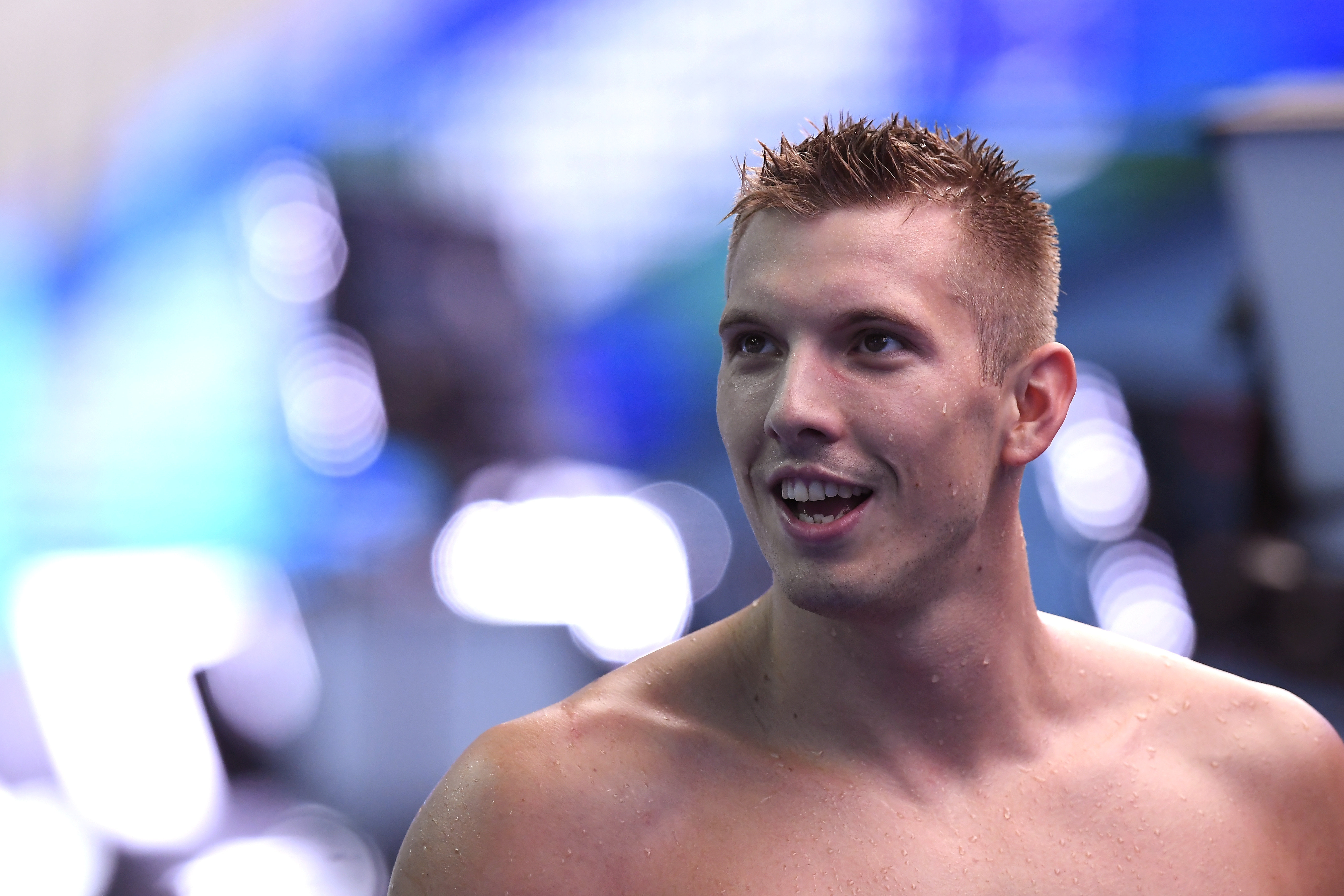 Kozma Dominik a férfi 200 méteres gyorsúszás előfutama után a 18. vizes világbajnokságon Kvangdzsuban (MTI/Kovács Tamás)