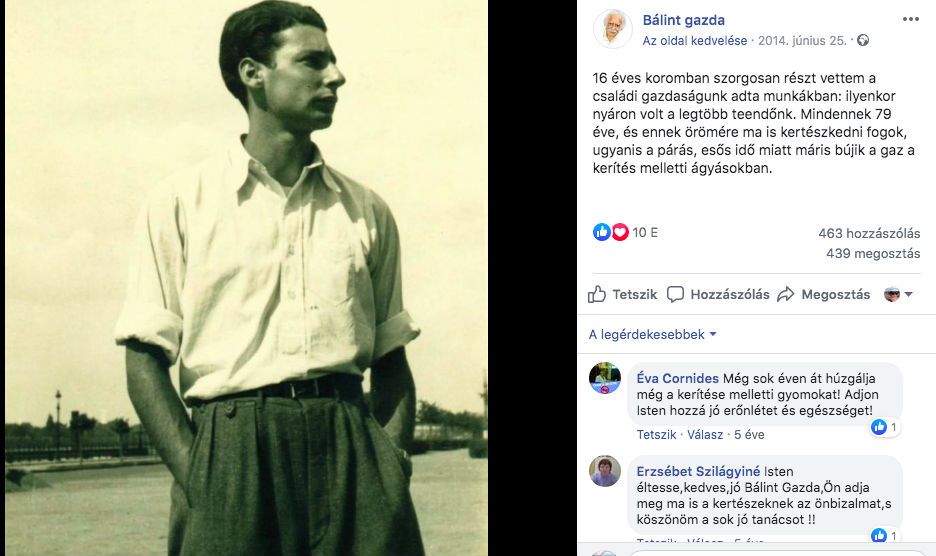 Az elmúlt hetekben már többször is szóba került, hogy Bálint gazda 100 éves, még a Reuters hírügynökség is felfigyelt rá. A ma is aktívan dolgozó kertészmérnök lelkesen mesélt a növényekről, és arról, hogy szerinte a legcsodálatosabb dolog a környezet gondozása. Persze, az életkorára is kitértek, és Bálint gazda csak annyit felelt: a hosszú élete titka, hogy egész életében olyan dologgal foglalkozhatott, amit szeretett. Erről nekünk is mesélt, a vele készült videós interjút is meg tudod itt nézni: