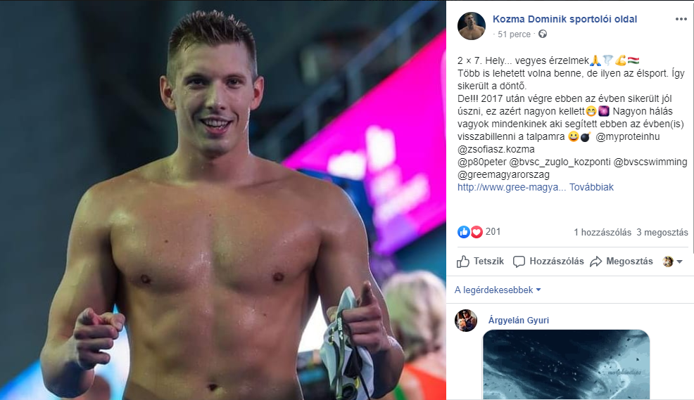 Vége a kvangdzsui vizes világbajnokságnak, jó helyen végzett a magyar csapat az éremtáblázaton: Hosszú Katinka kettő, Rasovszky Kristóf, Milák Kristóf és Kapás Boglárka egy aranyéremmel zárt. Az egyik nagy esélyes, Kozma Dominik kétszer lett hetedik helyezett, ami tetszik is neki, és nem is – erről elmélkedett a közösségi oldalán.