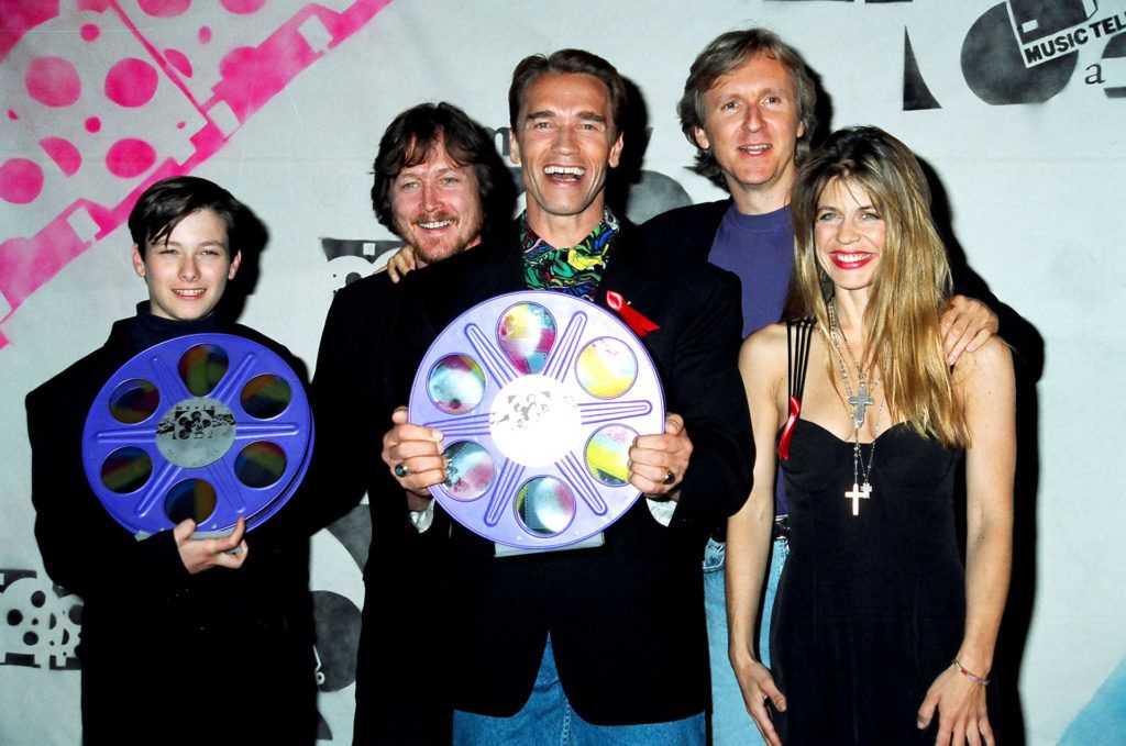 Edward Furlong, Robert Patrick, Arnold Schwarzenegger, James Cameron és Linda Hamilton a Terminator stábja (Fotó: Jeff Kravitz/FilmMagic, Inc)