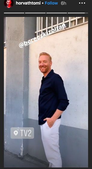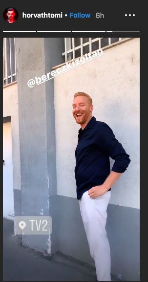 Bereczki Zoli kipihenten érkezett a vetítésre, és boldogan pózolt a fotósoknak, amit Horváth Tomi is megörökített: