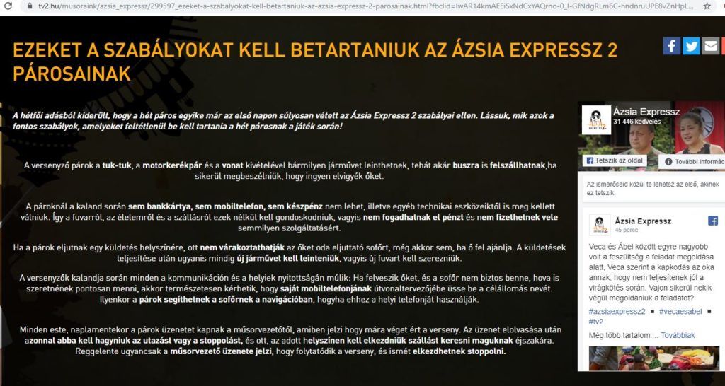 Ázsia Expressz szabályai