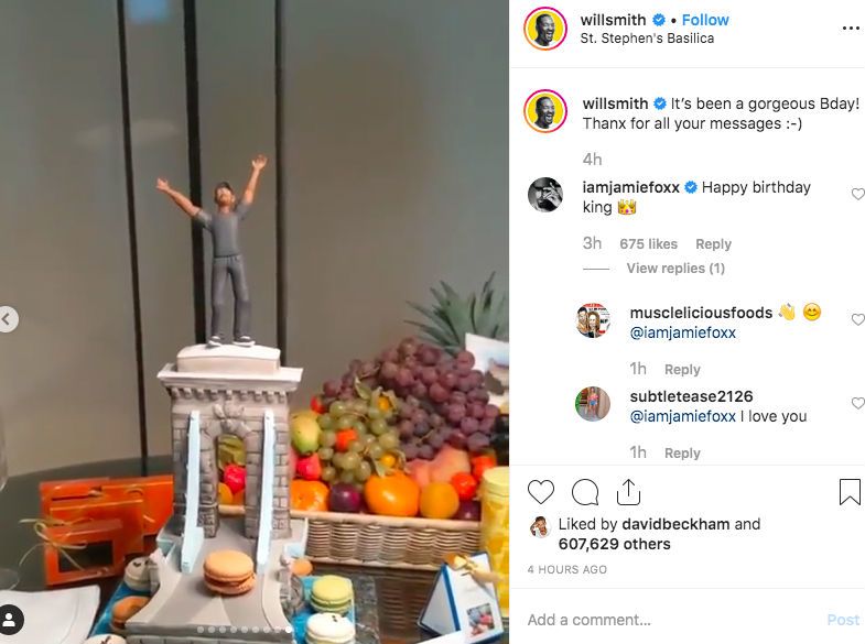 A Smith születésnapi buliján készült egyik videóból kiderült, hogy Smith Lánchíd-mászásáról is megemlékeztek: a sztár tortája ezt a pillanatot örökítette meg.
