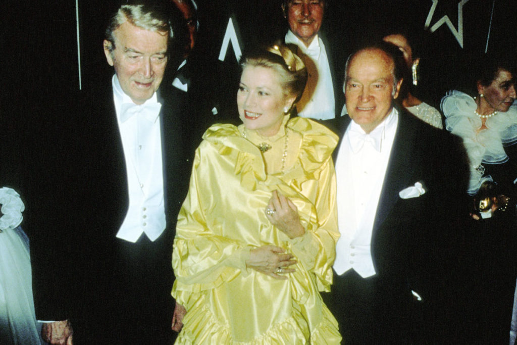 Az egyik utolsó kép: Jimmy Stewart, Grace Kelly és Bob Hope egy New York-i gálán, 1982-ben (Fotó: PL Gould/Images/Getty Images)
