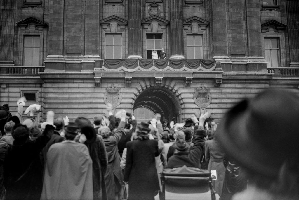 A hercegnő és férje ebben a percben visszaérkeztek a palotába, és már indulnak is az emeletre, hiszen hatalmas tömeg várja, hogy megpillanthassa őket a feldíszített erkélyen. A szokásos várakozás után nyílik az ajtó, és az ifjú pár az erkélyről integetve köszönti az egybegyűlteket. Erzsébet fátyla közben beakad az ajtóba, ám Margit hercegnő és Fülöp azonnal kiszabadítja a szorult helyzetből. Csókra hiába is várunk, az nem lenne illendő. Először az uralkodó, majd felesége és édesanyja hagyja el a balkont, végül csak Erzsébet és Fülöp marad a tömeggel. Az ifjú feleség még az ajtóból is visszafordul, és hatalmas mosollyal az arcán tovább integet a népnek.