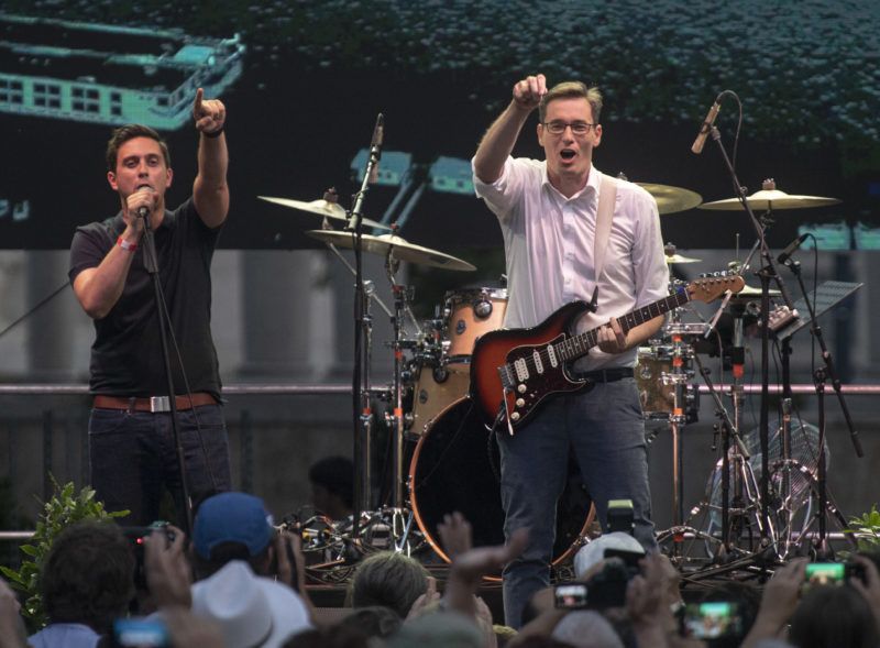 Szabó Kimmel Tamás és Karácsony Gergely a kampányindító rendezvényen (Fotó: MTI / Szigetváry Zsolt)