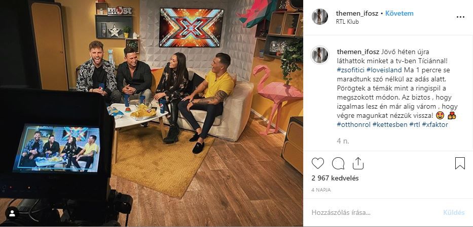 Bár nem erősítették meg, hogy valóban együtt vannak, Zsófi 4 napja posztolt képe erre enged következtetni. A szöveg végén ugyanis ott a kettesben szócska, illetve az emojin egy pár látható. A kommentelők epekedve várják a választ a kérdésre, miszerint tényleg újra összejöttek-e, de egyelőre egyik fél sem szólalt meg.