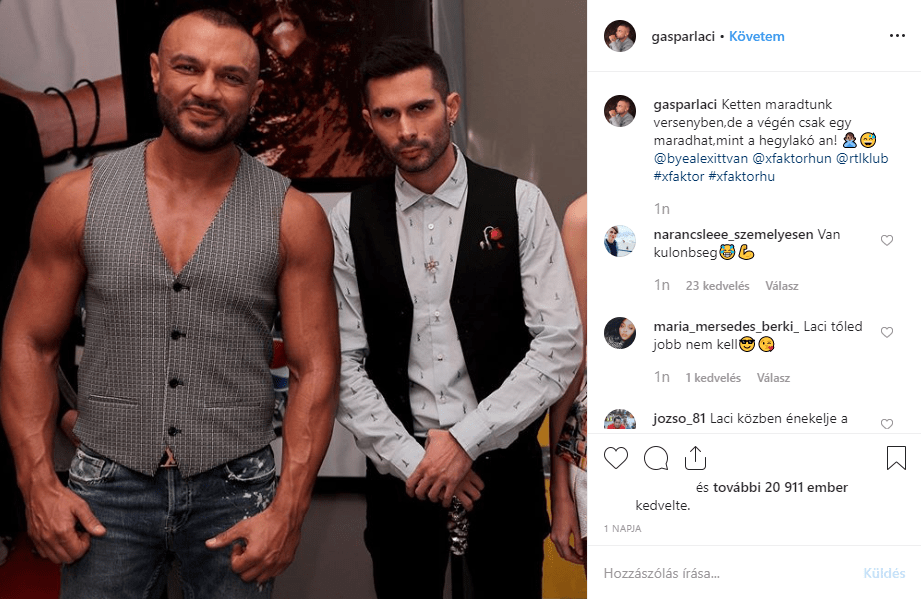 „Ketten maradtunk versenyben, de a végén csak egy maradhat, mint a hegylakóban” – írta a fotóhoz Gáspár Laci, aki ránézésre gyakorlatilag kétszer akkora, mint a mentortársa. A különbség természetesen a kommentelőknek is feltűnt, akik egyébként nagyon frappáns sorokkal jellemezték a képet.