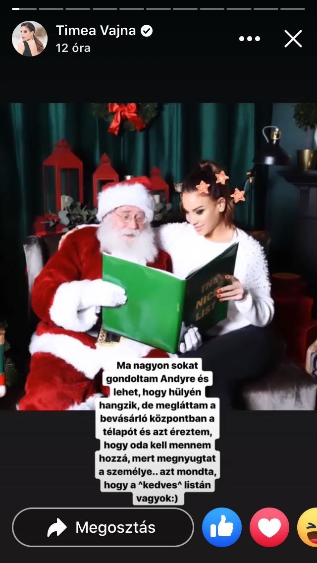 Vajna Tímea egy plázában találkozott a Mikulással, Andyhez hasonlította