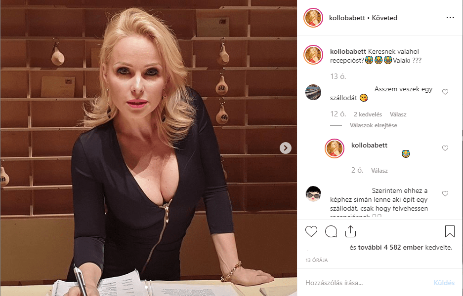 „Keresnek valahol recepcióst? Valaki?” – tette fel a költői kérdést Köllő Babett, akit természetesen nagyon sokan látnának szívesen a saját cégüknél vagy éppen otthon ebben a munkakörben.