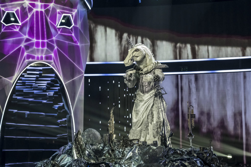Az Álarcos énekes első fellépője egy Unikornis-jelmezes versenyző volt (Fotó: RTL Sajtóklub)