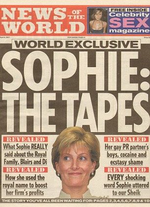 Érdekesség, hogy Erzsébet csak jobban megkedvelte menyét, miután az talpra állt egy botrány után, és évek óta, az egyik legaktívabb tagja a királyi családnak. Történt ugyanis, hogy 2001-ben, az akkor még működő News of the World magazin munkatársa álruhában felvette, ahogyan a grófné nem túl kedves megjegyzéseket tesz a brit kormány néhány tagjára, majd néhány perccel később a felvételen hallható, ahogyan arról beszél, hogy rangját használja fel arra, hogy vállalkozásának ügyfeleket szerezzen. Amikor Zsófia lelepleződött, férjével együtt visszavonultak az üzleti élettől, és azóta csakis a királyi család tagjaiként tesznek eleget minden kötelezettségnek.