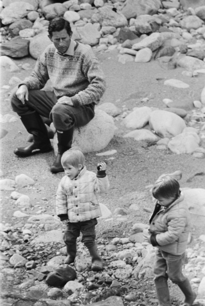 Károly herceg és fiai 1986-ban, a Balmoral kastélyhoz közeli folyónál. (fotó: Profimedia)