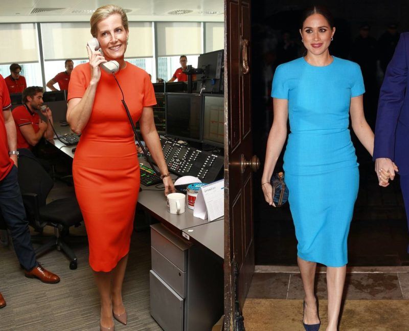 Zsófia wessexi grófné már rég a királyi család tagja volt, és végezte a dolgát, amikor Meghan Markle még Kanadában forgatta a Briliáns elmék sorozatot. II. Erzsébet menye mindig részt vesz például a BGC jótékonysági eseményei, és segít a pénzgyűjtésben. 2015-ben egy testre simuló, nagyon elegáns Victoria Beckham ruhában jelent meg a rendezvényen, amiről még napokkal később is cikkeztek a lapok. Hozzá egy Gianvito Rossi cipellőt viselt. A fotót most kapták fel újra a divatszerkesztők, akik szerint Zsófi szettjei inspirálták Meghan Markle-t azután, hogy bekerült a királyi családba. Meghan több alkalommal viselt olyan márkájú és fazonú ruhát, amit a kétgyermekes Zsófia előtte már magára öltött. Ezt a kék darabot például március 5-én, nem sokkal azelőtt, hogy férjével az Egyesült Államokba költöztek.
