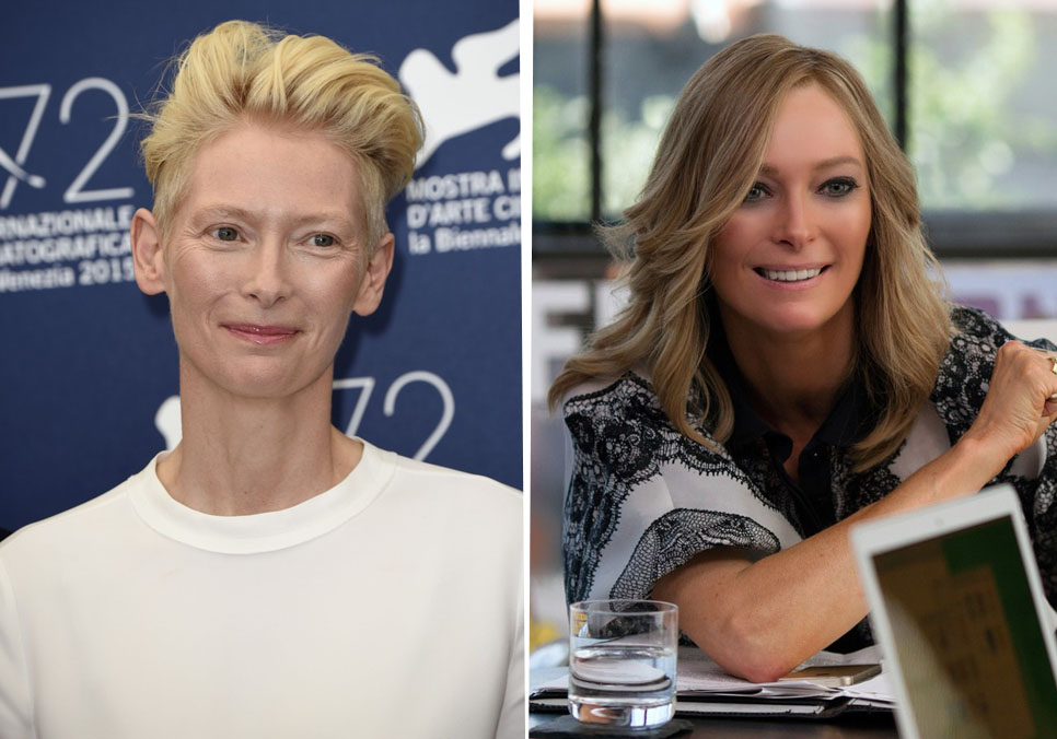 Tilda Swinton képes tényleg eltűnni a szerepeiben, és óriási átalakulások fűződnek a nevéhez. Egy ilyen összeállításban a legkézenfekvőbb lenne bemutatni azt, amikor a Suspiria című horrorfilmhez öregemberré alakították, de itt most egy elsőre kevésbé látványos, ám sokkal trükkösebb átalakulást szeretnék bemutatni. Az avantgárd stílusáról és markáns arcéleiről ismert színésznő ugyanis a Kész katasztrófa című vígjátékban egy menő magazin főszerkesztőjét, Dianna-t alakítja, és annyira átlagos a külseje, hogy szinte képtelenség a karakterben ráismerni Swintonra.