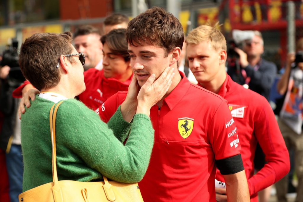 Anthoine Hubert édesanyja és Charles Leclerc a 2019-es belga Forma 1-es futamon, az egy perces gyász szünet után (Fotó: Profimedia)