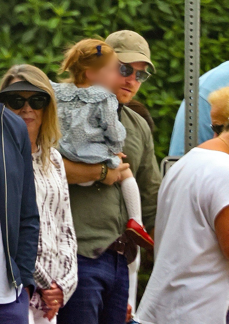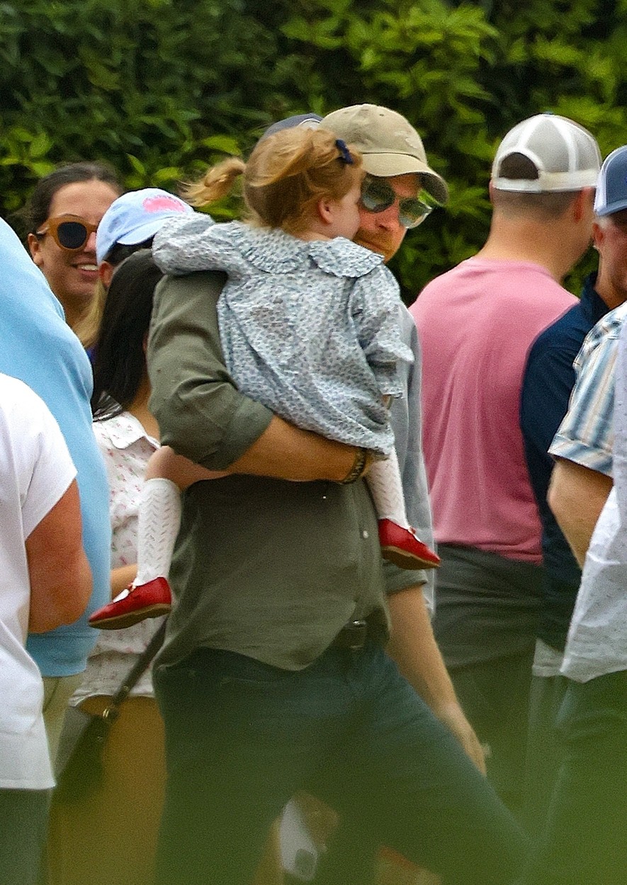 Harry herceg és kislánya Lilibet a július 4-ei felvonuláson. Harry farmert viselt, zöld trikóval és baseball sapkával a kezében imádnivaló lányát tartotta, aki egy virágos ruhát viselt fehér kötött harisnyával és piros cipővel (Fotó: Profimedia)